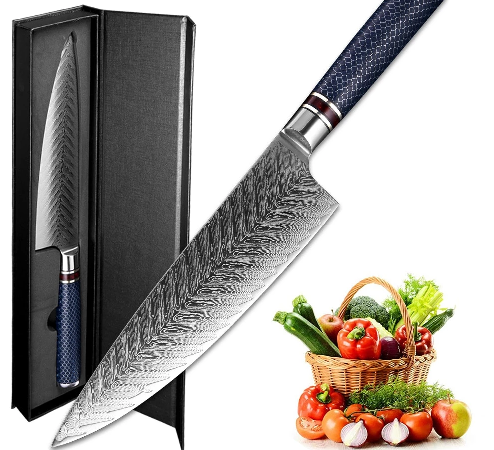 Multi-Functional Knife - This is a versatile professional kitchen Damascus knife that can be perfectly chopped, chopped, sliced, diced with vegetables, fruit and meat. Ideal for professional chefs, culinary experts, food suppliers, and novice home cooks.